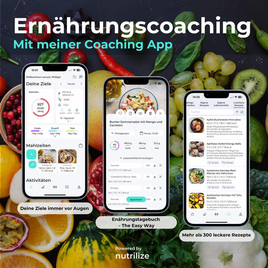- Routinen schaffen, die langfristig umsetzbar sindMit meiner Coaching App ist es ganz einfach alles zu dokumentieren und so deinen Fortschritt zu begutachten.